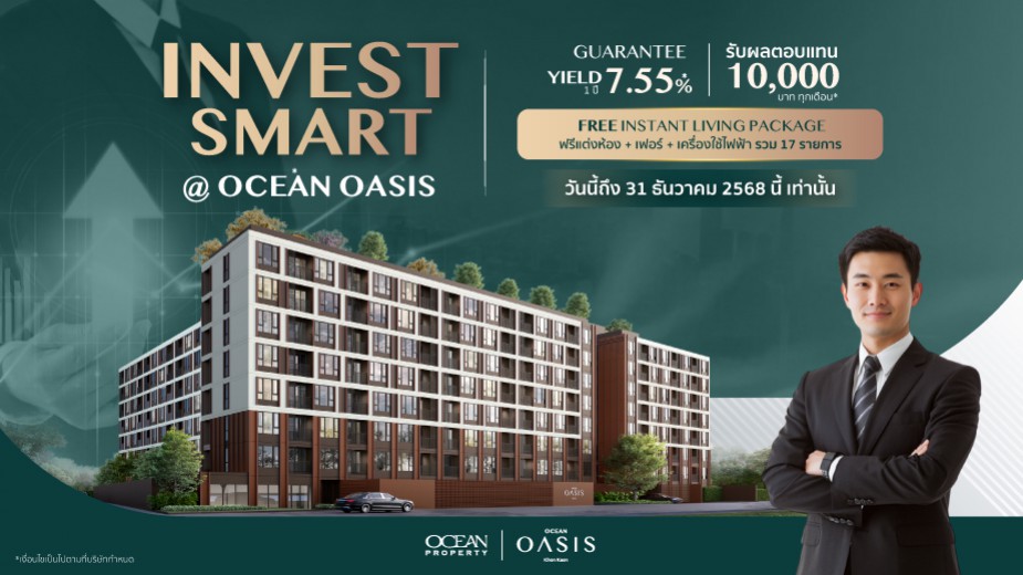INVEST SMART @ OCEAN OASIS Guaranteed Yield 7.55%* Invest Today & Earn 10,000 THB/Month*