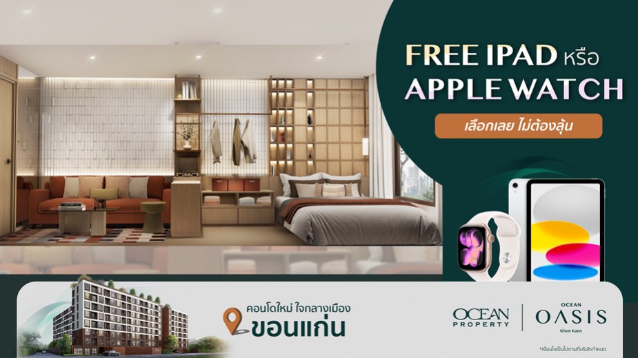 Ocean Oasis Khon Kaen is offering a special promotion: Reserve today and choose a free iPad or Apple Watch