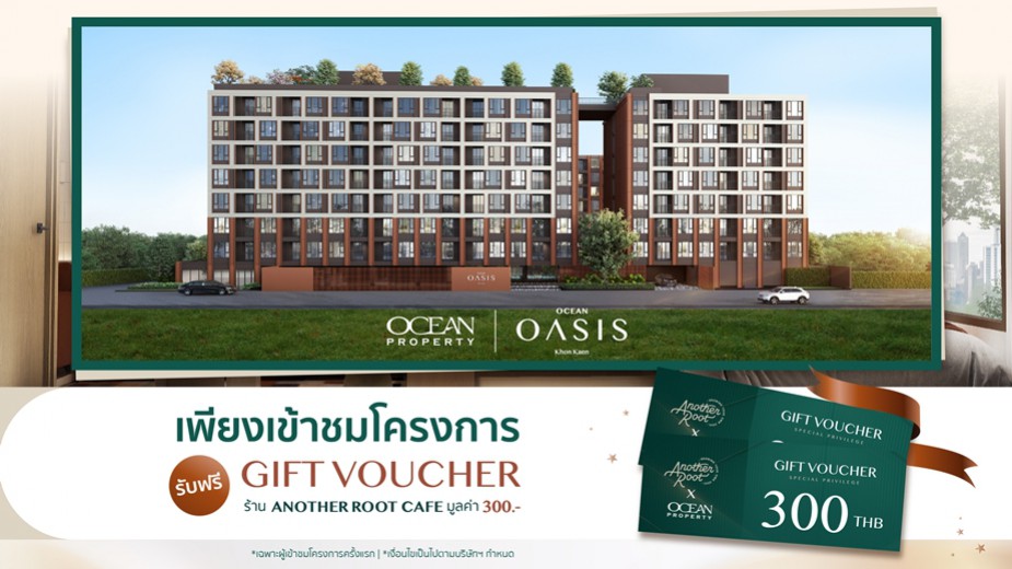 Simply visit the Ocean Oasis Khon Kaen project and receive a 300 Baht Gift Voucher for *Another Root.