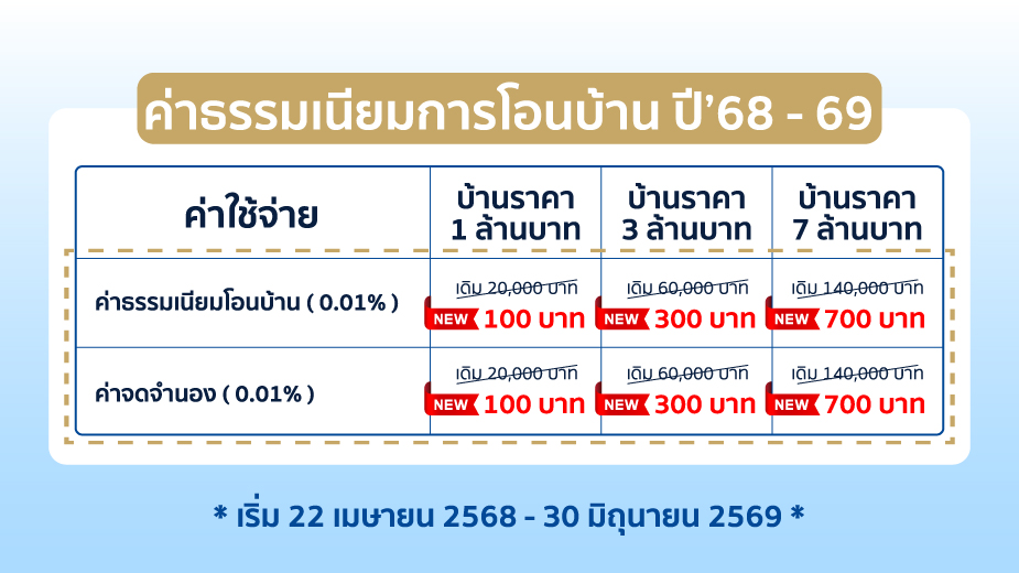 ⬤ ค่าธรรมเนียมการโอนกรรมสิทธิ์: ลดจาก 2% เหลือ 0.01%