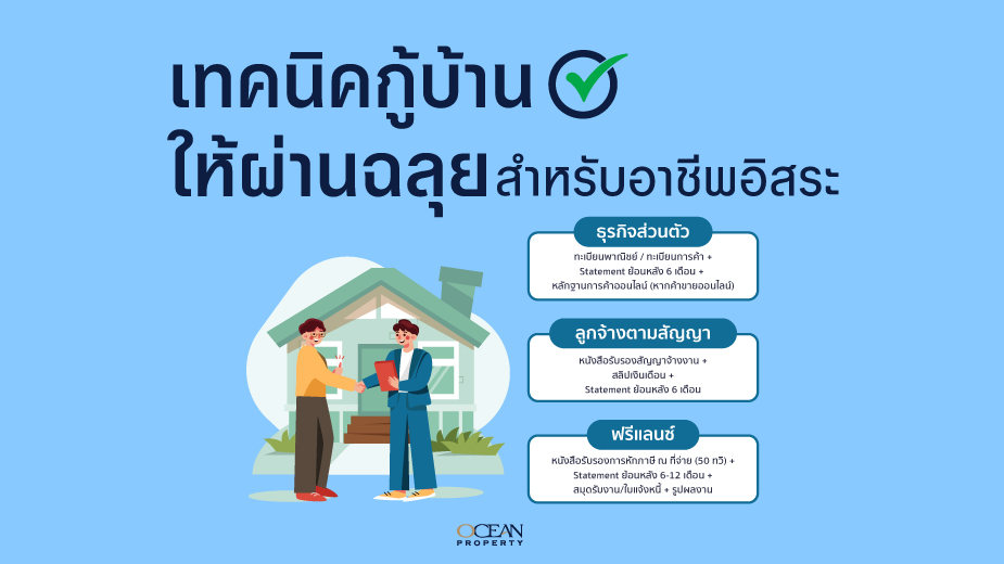 เตรียมเอกสารเหล่านี้ให้ครบถ้วนและแสดงความมั่นคงทางการเงิน จะช่วยให้การกู้ซื้อบ้านของคนทำงานอิสระผ่านได้อย่างง่ายดายและมั่นใจมากขึ้น