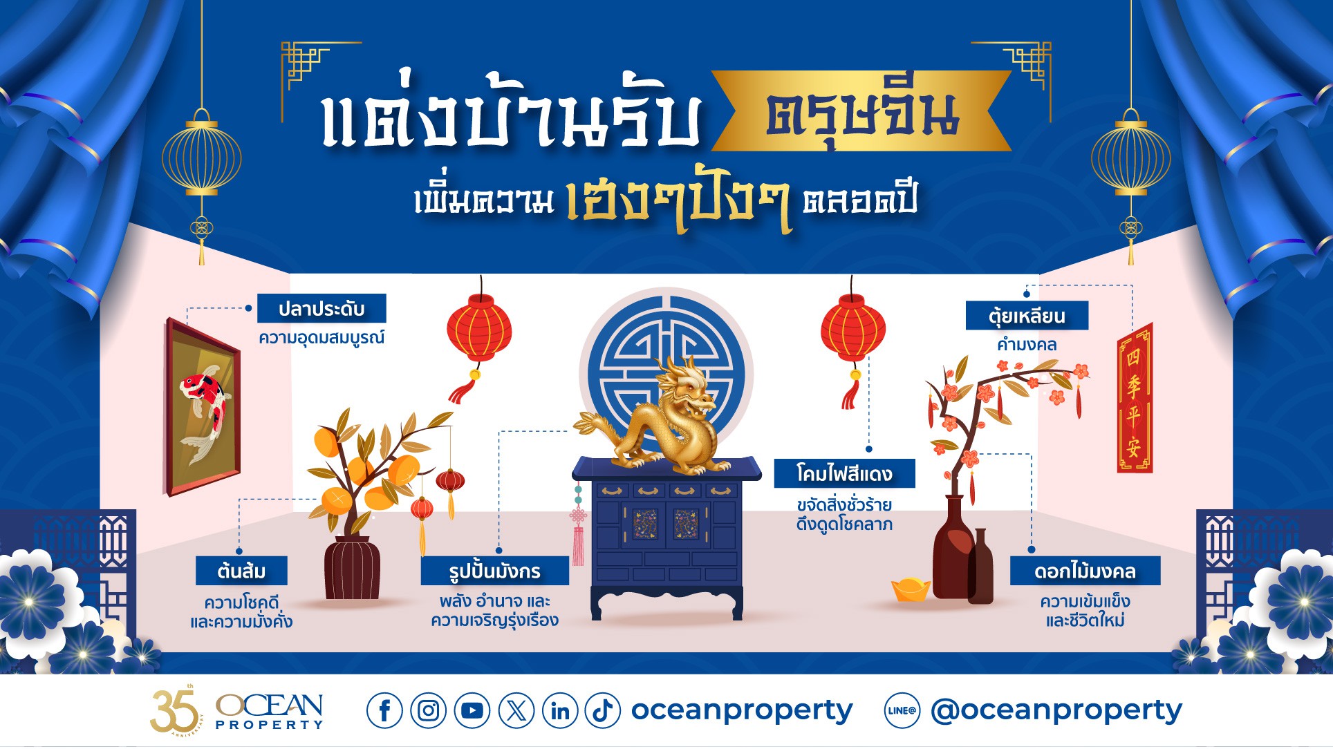 ตรุษจีนปีนี้ Ocean Property ชวนคุณแต่งบ้านเพิ่มความเฮง เสริมสิริมงคล ดึงดูดโชคลาภ ด้วยของมงคลที่้หาซื้อง่าย ทำตามได้ทุกคน พร้อมเเล้วมาดูกันเลย