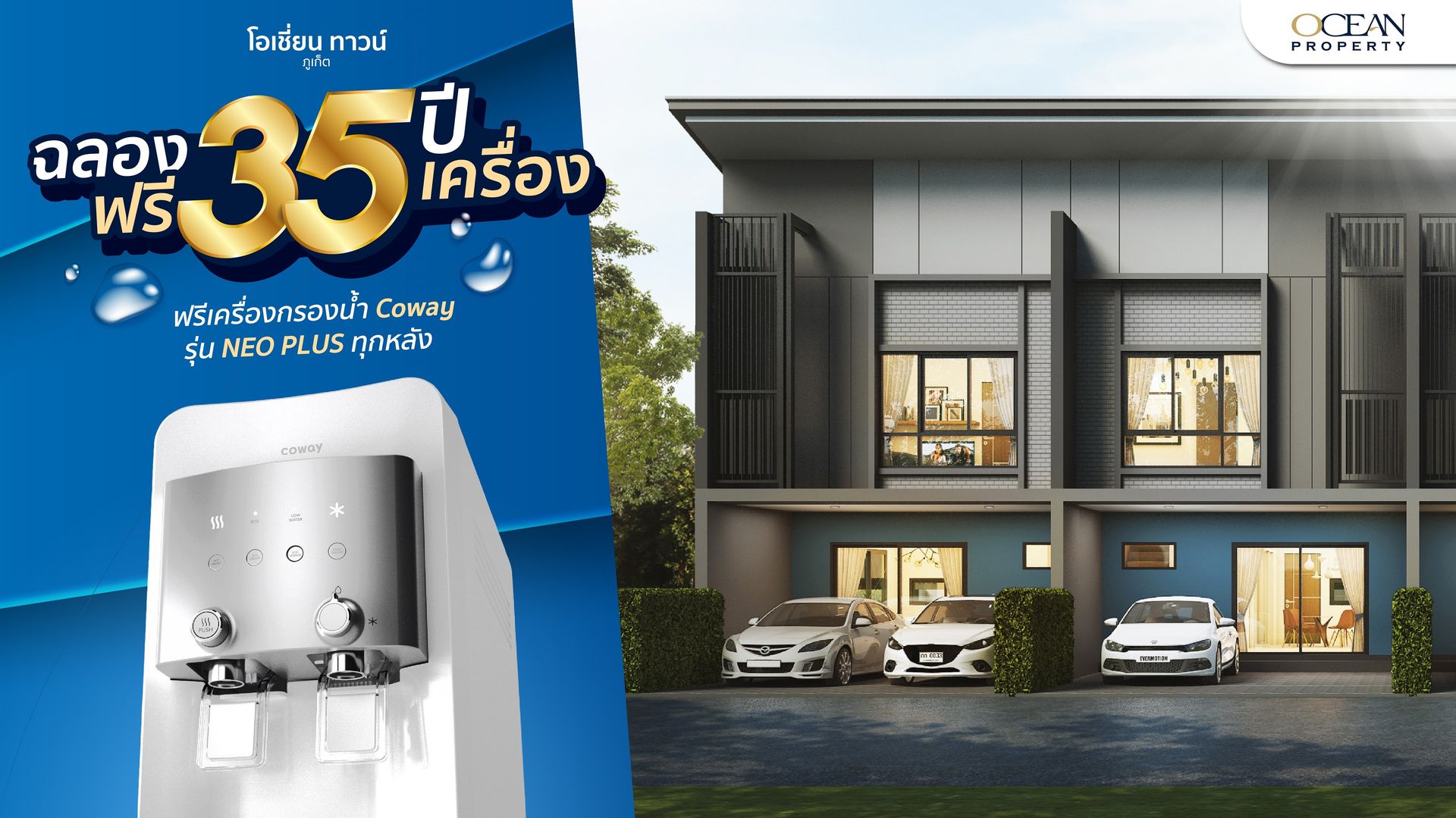 ฉลอง Ocean Property ก้าวสู่ปีที่ 35 รับฟรี! เครื่องกรองน้ำแบรนด์ดังจากเกาหลี Coway รุ่น NEO PLUS* 35 เครื่อง เพียงโอนกรรมสิทธิ์ ทาวน์โฮม และอาคารพาณิชย์ โครงการโอเชี่ยน ทาวน์ เมือง-รัษฎา ภูเก็ต ตั้งเเต่วันนี้ - 30 มิถุนายน 2568 สนใจคลิก https://m.me/183975518299717?ref=otcowaywebpro หรือ โทร. 020385020