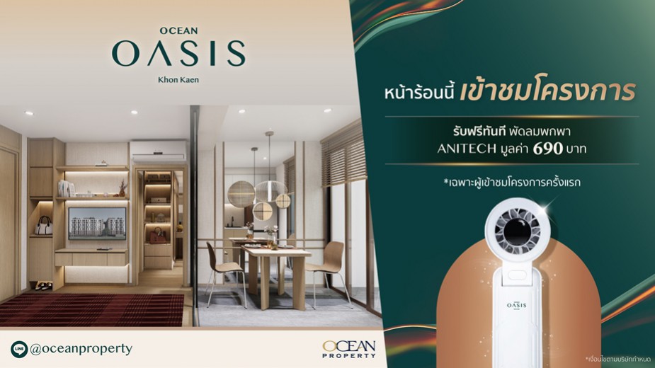 เพียงเยี่ยมชมโครงการ โอเชี่ยน โอเอซิส ขอนแก่น รับทันทีพัดลมพกพา มูลค่า 690 บาท