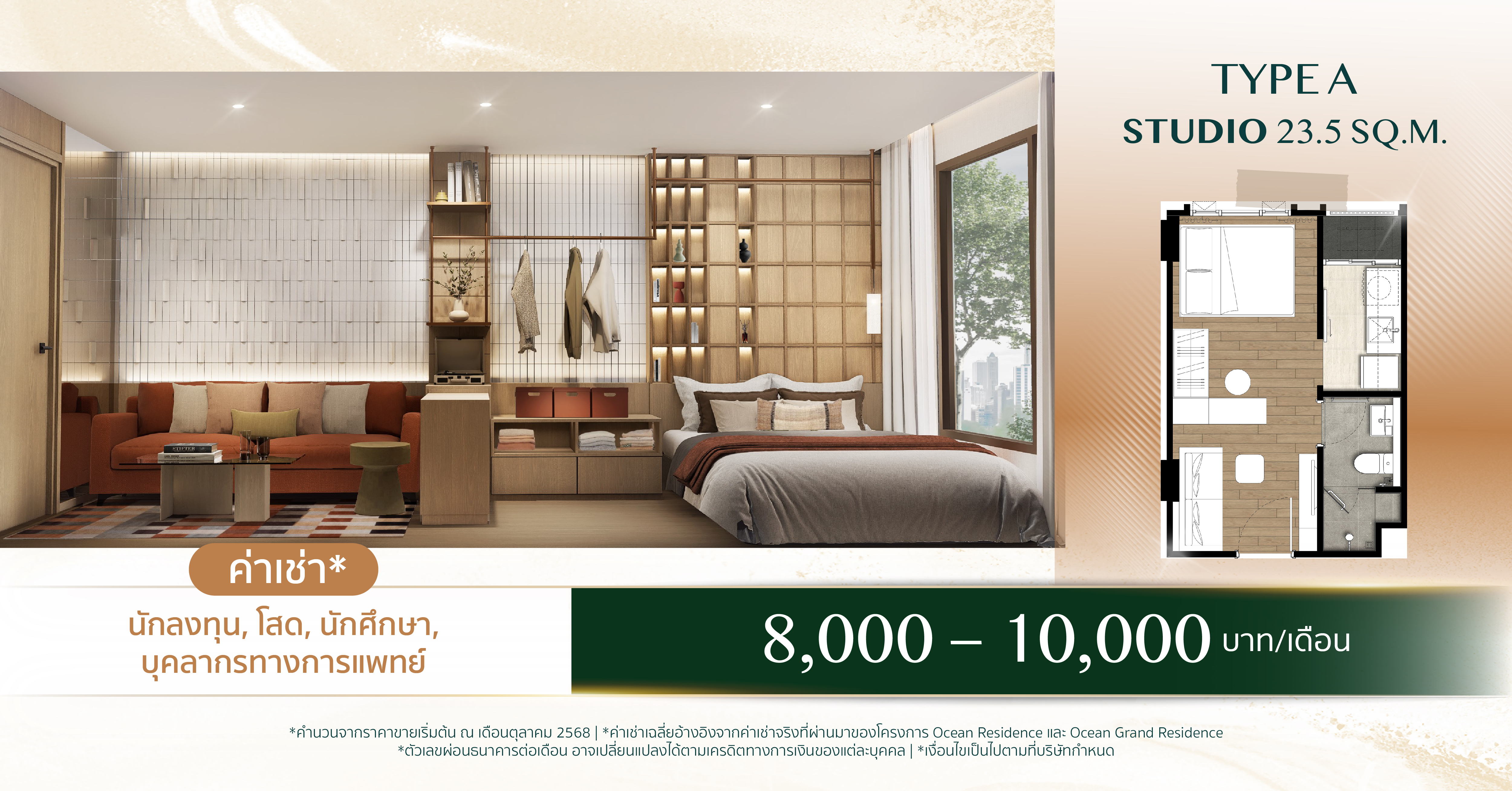 ค่าเช่าโดยประมาณ 8,000 – 10,000 บาท/เดือน