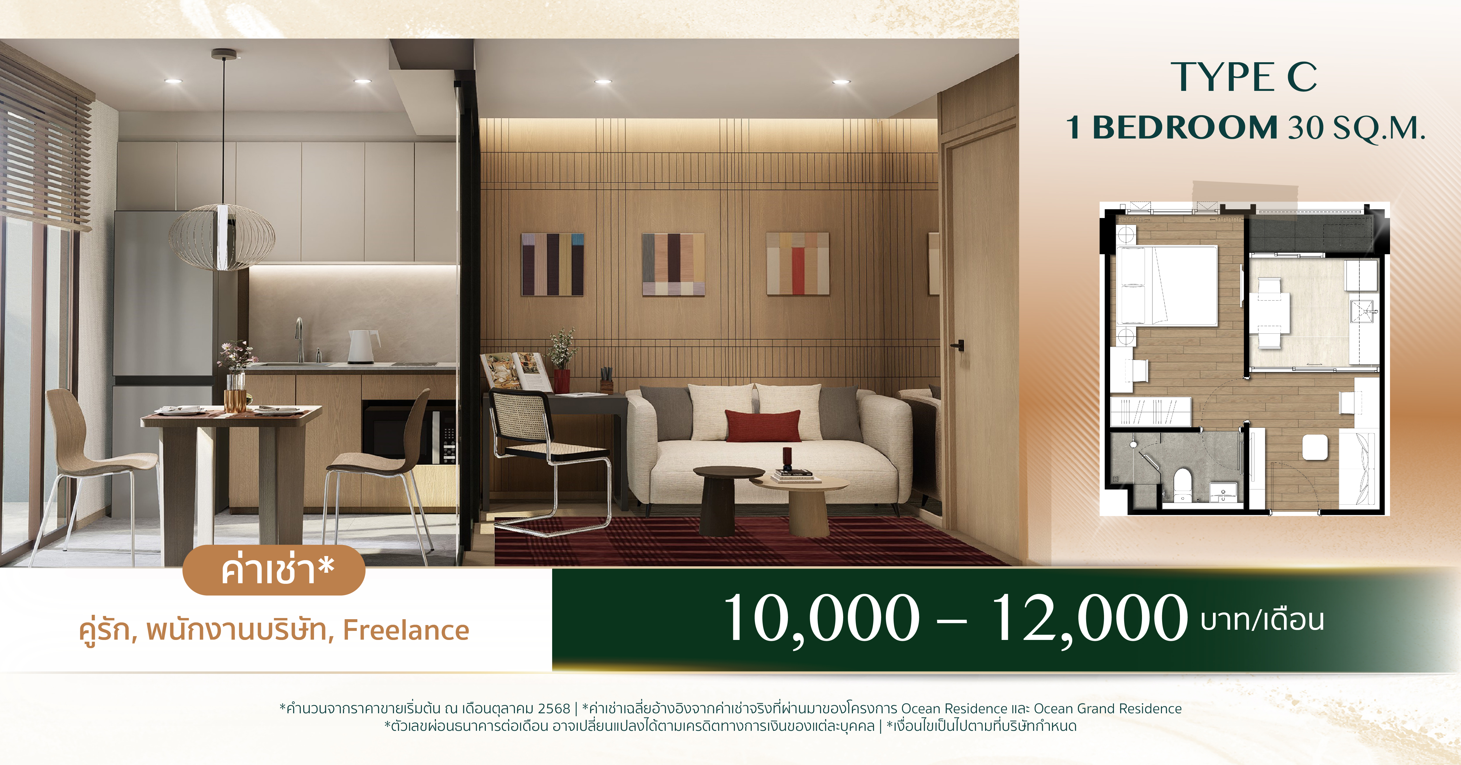 ค่าเช่าโดยประมาณ 10,000 – 12,000 บาท/เดือน