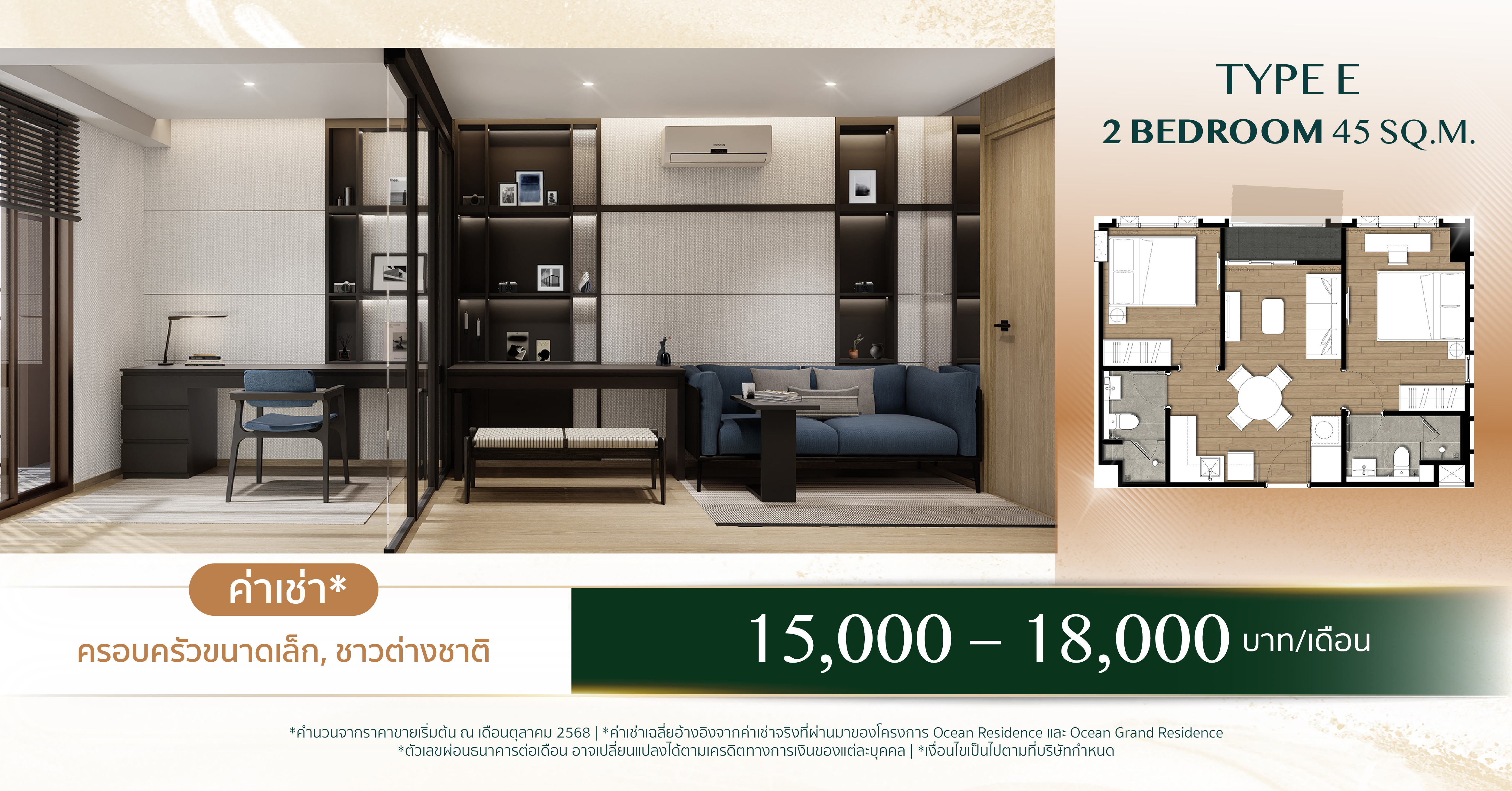 ค่าเช่าโดยประมาณ 15,000 – 18,000 บาท/เดือน
